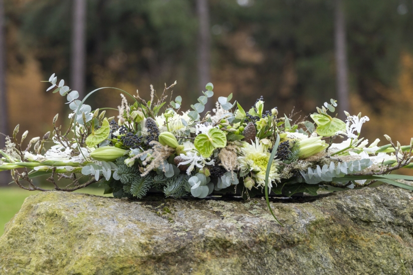 Troostend licht is een gepersonaliseerd uitvaartbloemstuk op basis van wit groene bloemen aangevuld met diverse blad en bijmaterialen in de laatste maanden van het jaar. Deze mooie mix van materialen geven dit uitvaartbloemstuk zijn charme. Wolter Strijker bedenkt en maakt de mooiste uitvaartbloemen passend bij de persoon om wie het gaat. Deze vorm is het hele jaar door goed te maken met de bloemen van het seizoen.